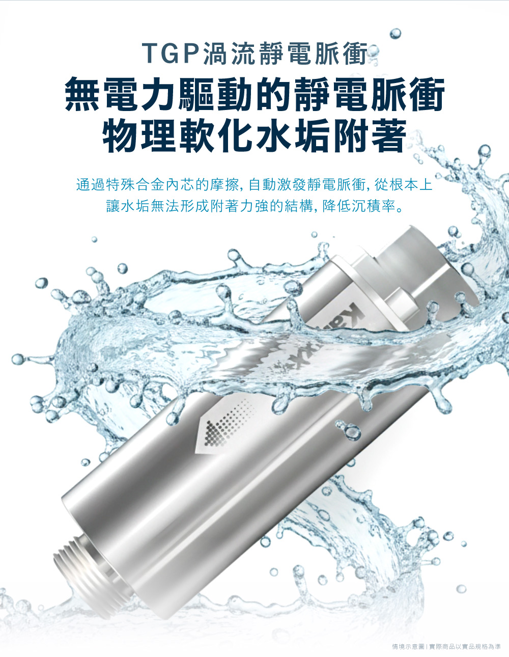 雙效抑垢核心:結合 TGP 靜電脈衝 + LDS 緩釋技術,加倍防止水垢附著
